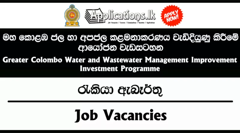 Government Job Vacancies in Sri LankaGreater Colombo Water and Wastewater Management Improvement Investment Programme (GCWWMII) Vacancies Quantity Surveyor, Senior Wastewater Management Consultant, Senior Structural Design Consultant, Senior Geotechnical Consultant – Greater Colombo Water and Wastewater Management Improvement Investment Programme (GCWWMII) Vacancies 2025 June 25, 2025 Applications.lk Closing Date – 2025.07.04 Read More
