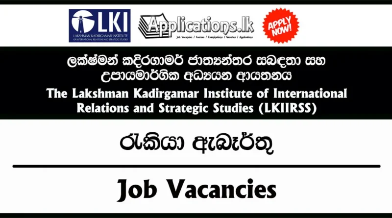 Government Job Vacancies in Sri LankaThe Lakshman Kadirgamar Institute of International Relations and Strategic Studies (LKIIRSS) Vacancies Executive Director – The Lakshman Kadirgamar Institute of International Relations and Strategic Studies (LKIIRSS) Vacancies 2025 June 24, 2025 Applications.lk Closing Date – 2025.07.07 Read More