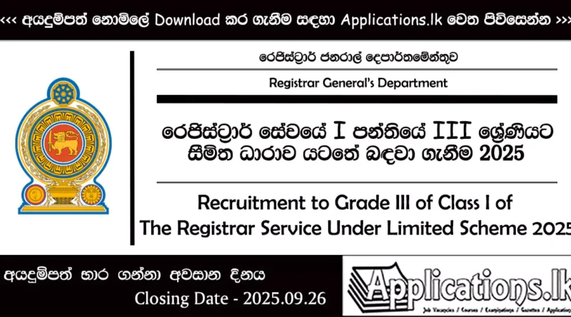 Read MorePublic Service CommissionMinistry of Public Administration, Provincial Councils and Local GovernmentRegistrar General’s Department Closing Date – 2025-09-26