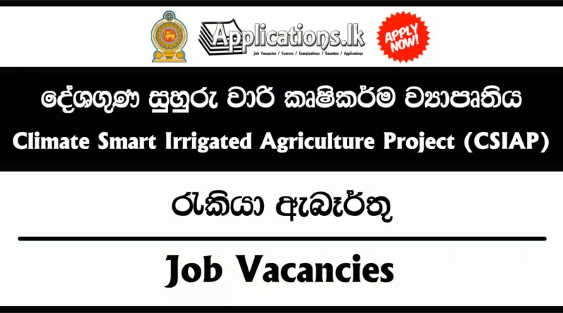 Climate Smart Irrigated Agriculture Project (CSIAP) VacanciesGovernment Job Vacancies in Sri Lanka Senior Technical Officer, Senior Procurement Officer, Gender Development Officer, Monitoring and Evaluation Officer, Environment Safeguard Officer, Agriculture Facilitator – Climate Smart Irrigated Agriculture Project (CSIAP) Vacancies 2025 July 28, 2025 Applications.lk Closing Date – 2025.08.06 Read More
