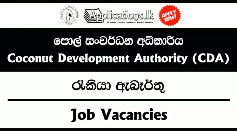 Coconut Development Authority (CDA) VacanciesGovernment Job Vacancies in Sri Lanka Programme Assistant, Lab Field Assistant – Coconut Development Authority (CDA) Vacancies 2025 July 13, 2025 Applications.lk Closing Date – 2025.07.31 Read More