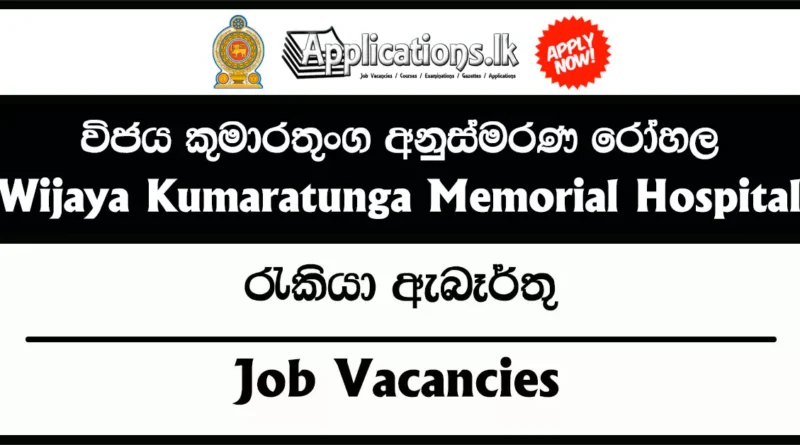 Government Job Vacancies in Sri LankaWijaya Kumaratunga Memorial Hospital Vacancies Medical Officer, Special Grade Nursing Officer, Nursing Officer – Wijaya Kumaratunga Memorial Hospital Vacancies 2025 March 9, 2025 Applications.lk Closing Date – 2025.03.10 Read More