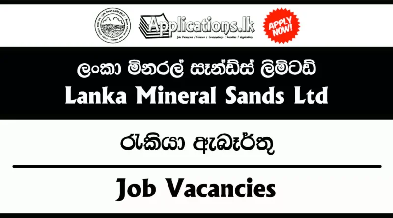 Government Job Vacancies in Sri LankaLanka Mineral Sands Limited Vacancies Deputy General Manager, Geologist, Engineering Assistant – Pulmoddai Plant – Lanka Mineral Sands Limited Vacancies 2025 February 23, 2025 Applications.lk Closing Date – 2025.03.03 Read More