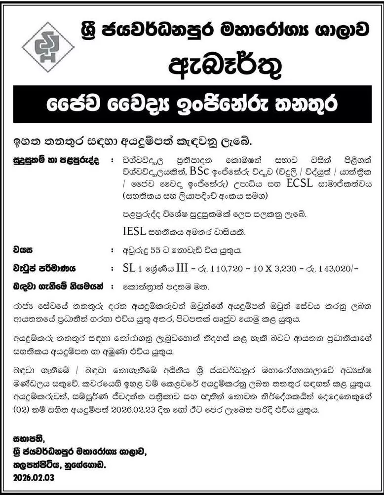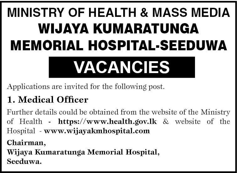 Medical Officer – Sri Jayewardenepura General Hospital (SJGH) Vacancies 2026