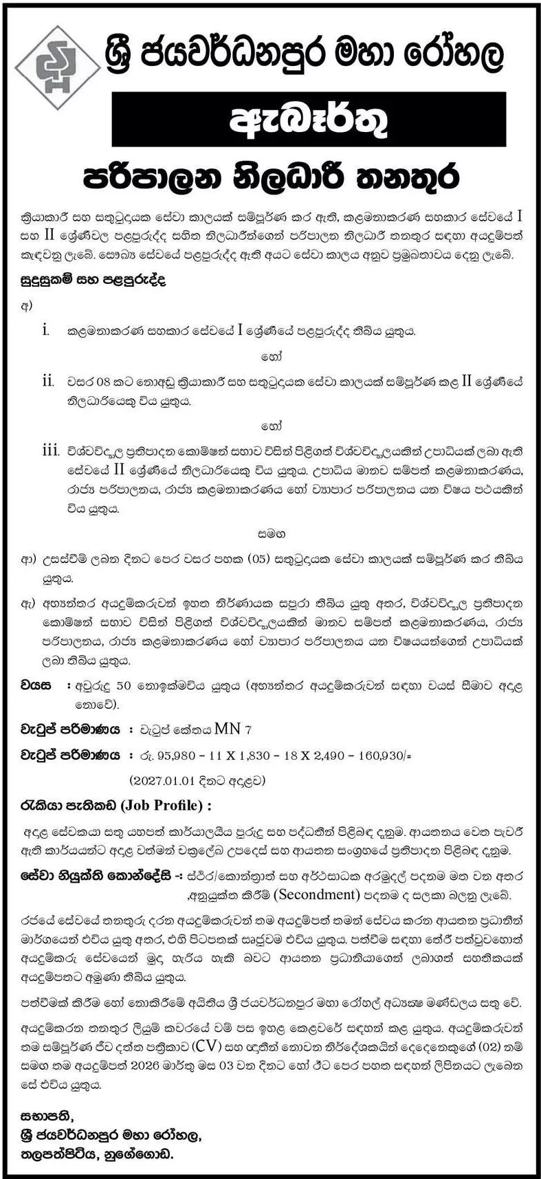 Sri Jayewardenepura General Hospital Vacancy 2026 – Administrative Officer (MN 7)