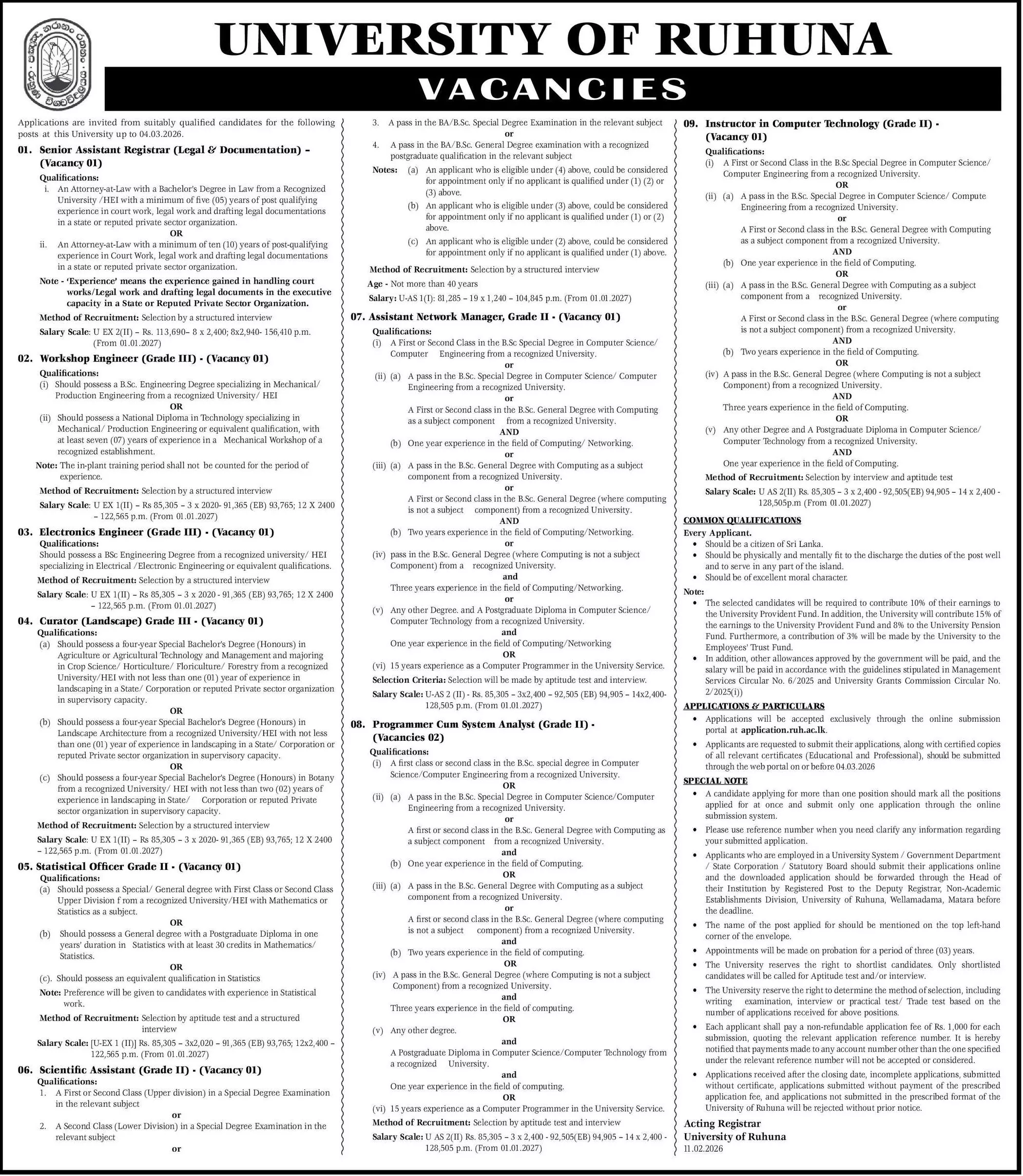 π Vacancies 2026 β Instructor and Non-Academic β University of Ruhuna, Sri Lanka